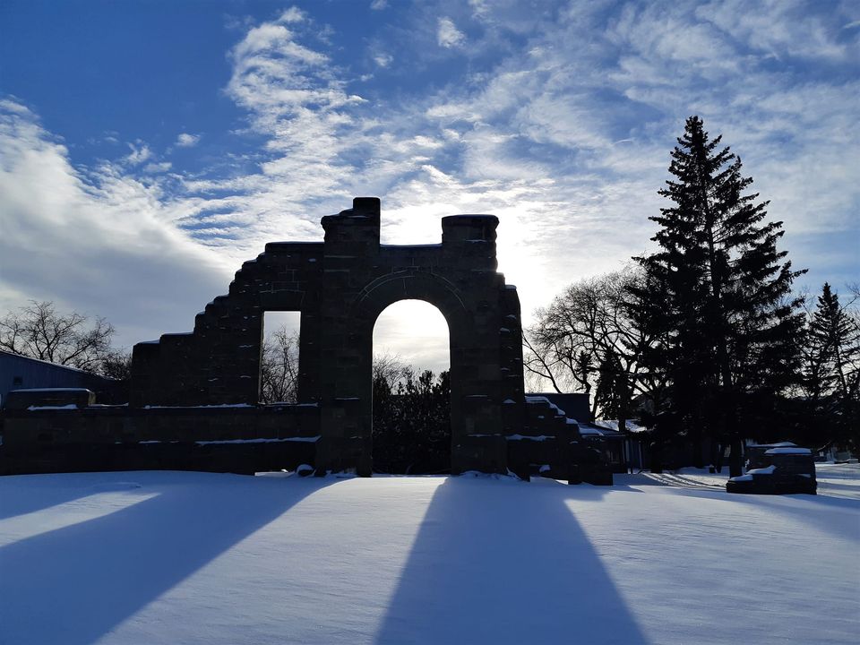 Charlie and Jacques spend some time with the Birdman as he reads off one of his inspirational writings while walking through the hospital ruins on 12th Ave SE, Calgary, Alberta.