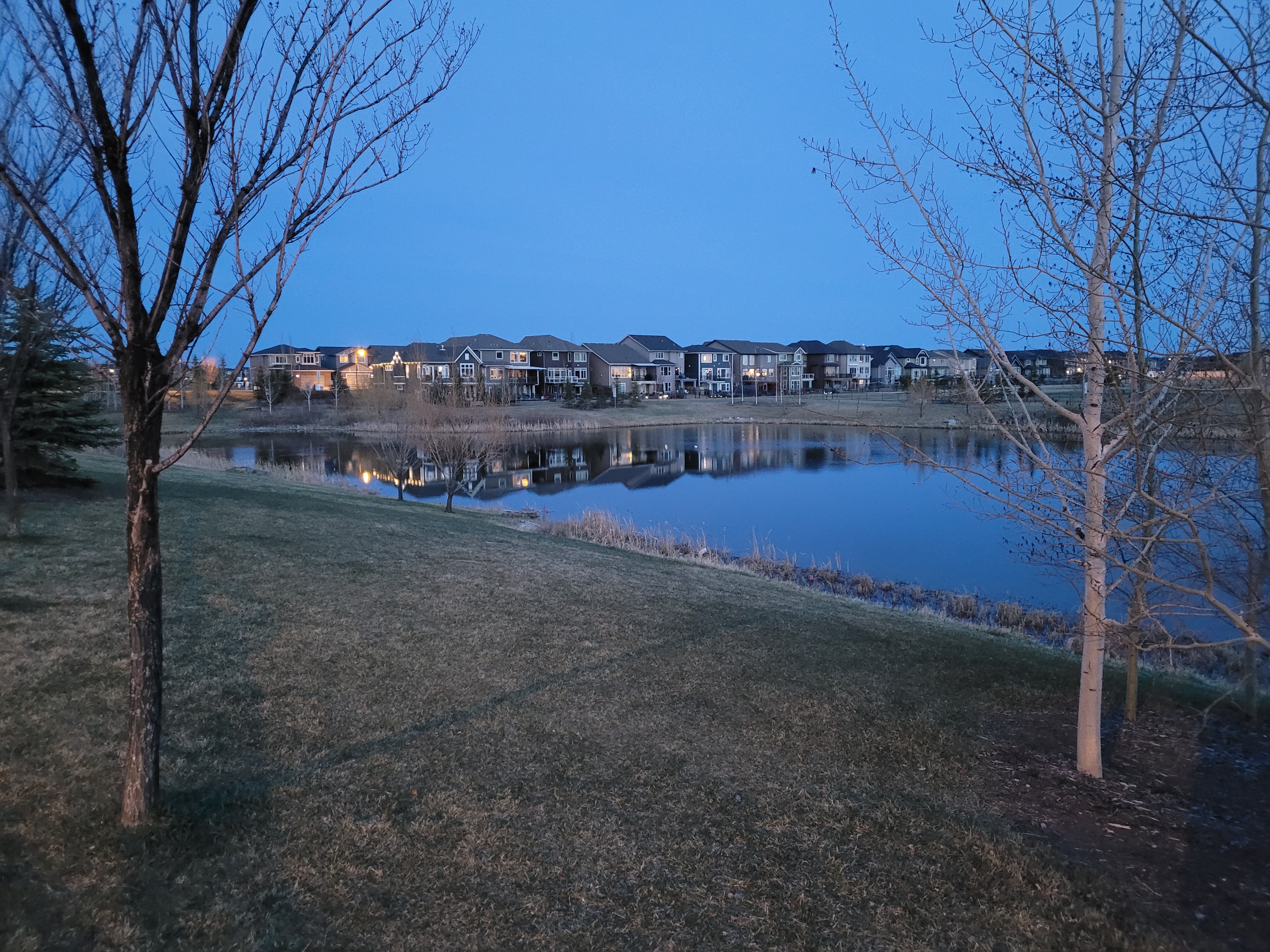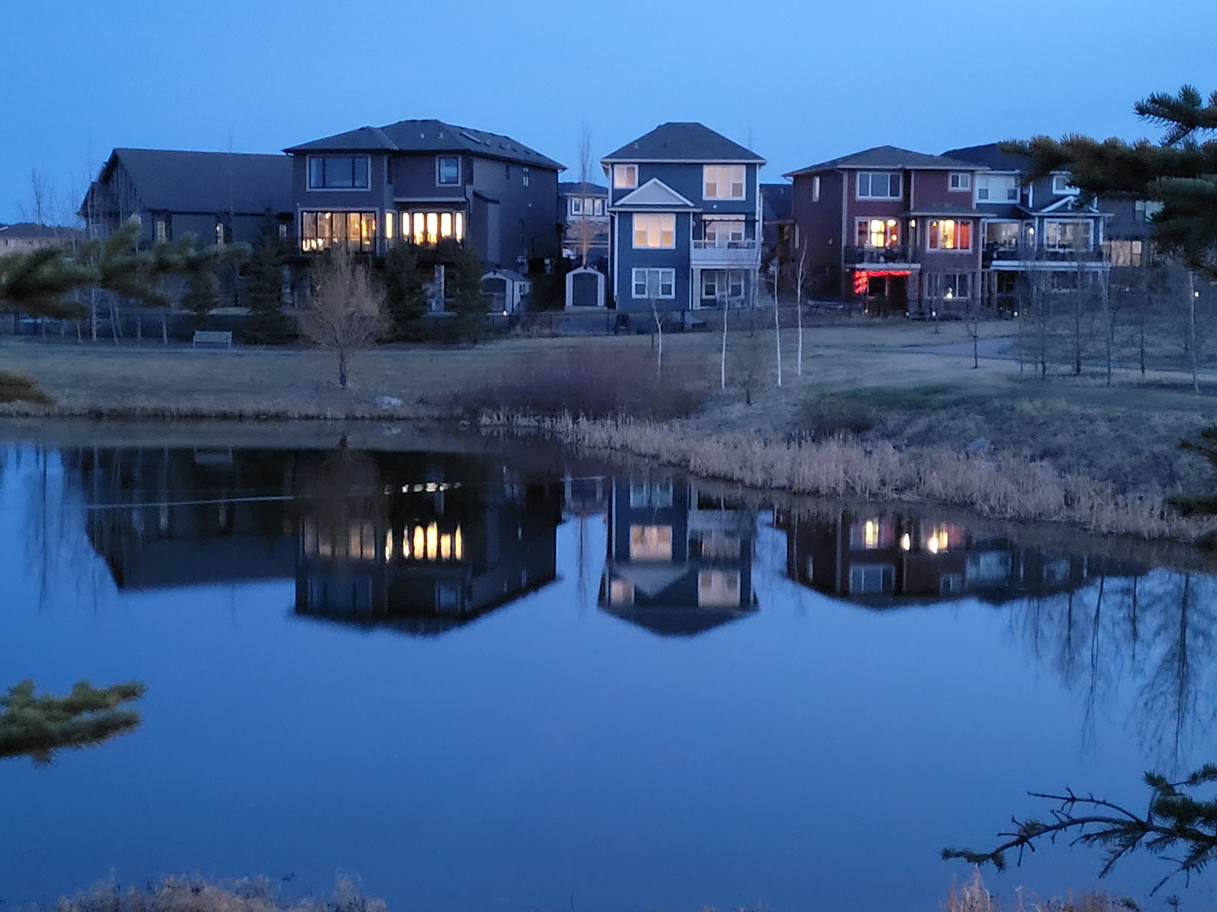 Charlie and Jacques stop in Legacy to have a look at the pond reflection.