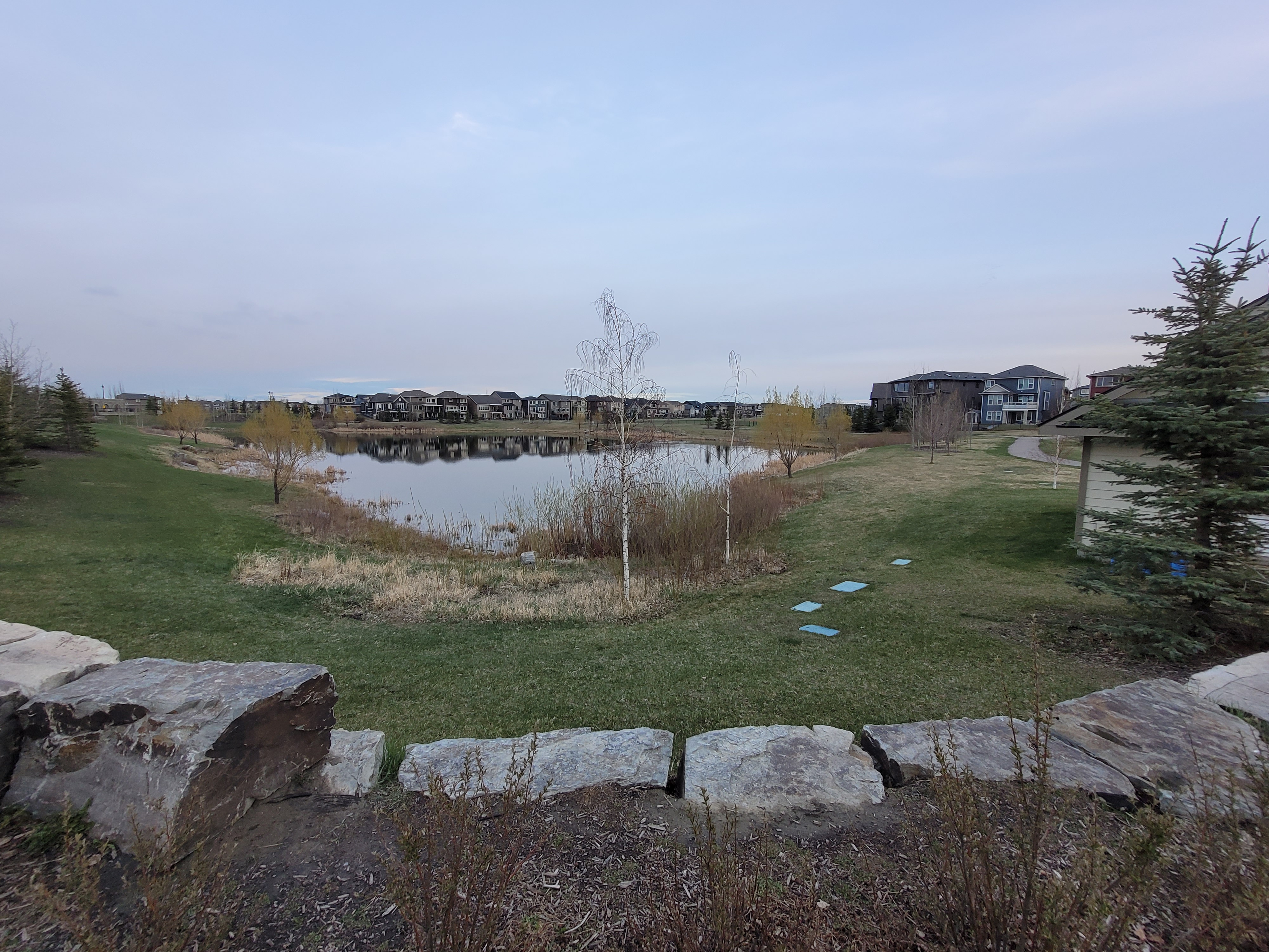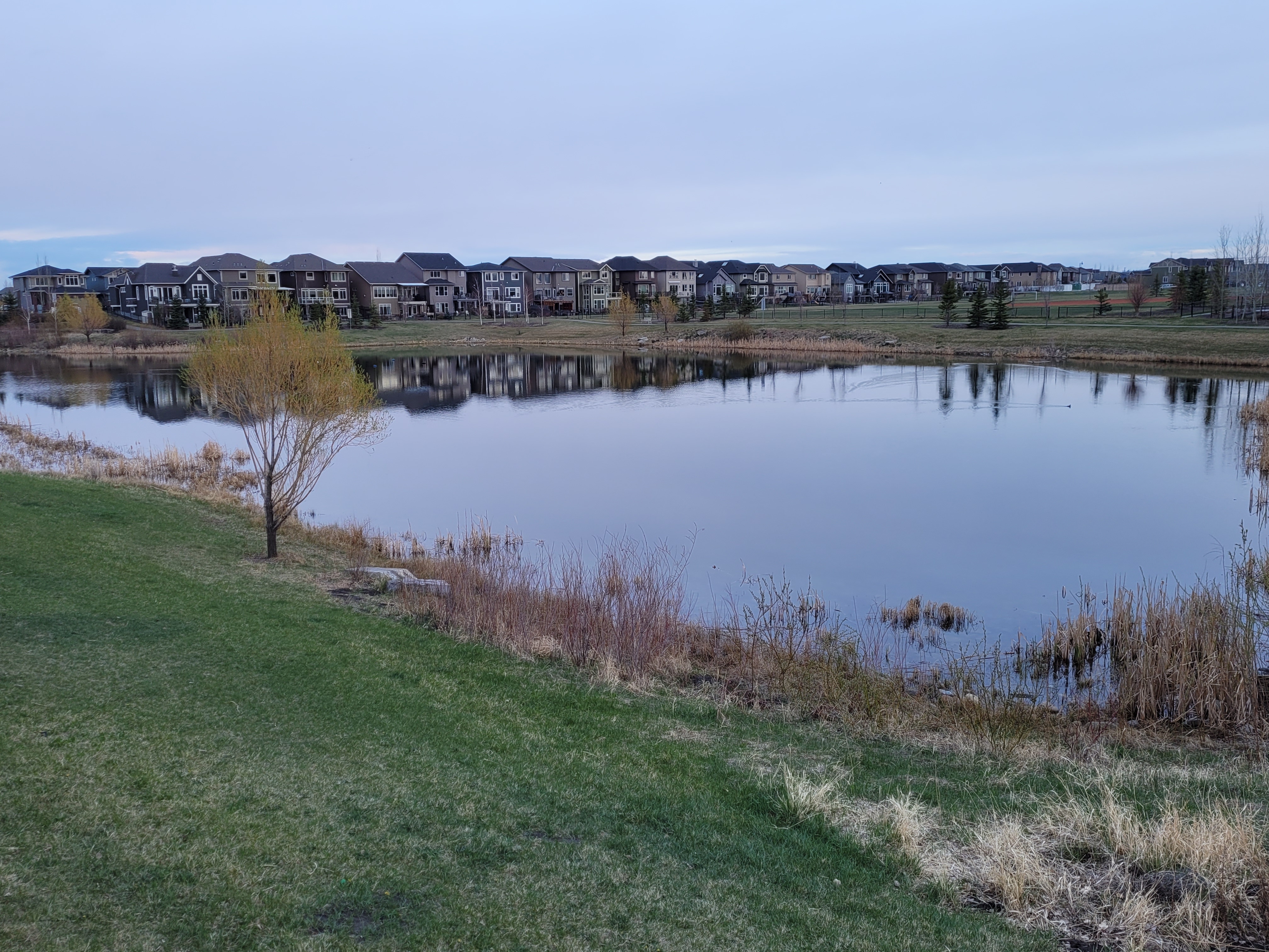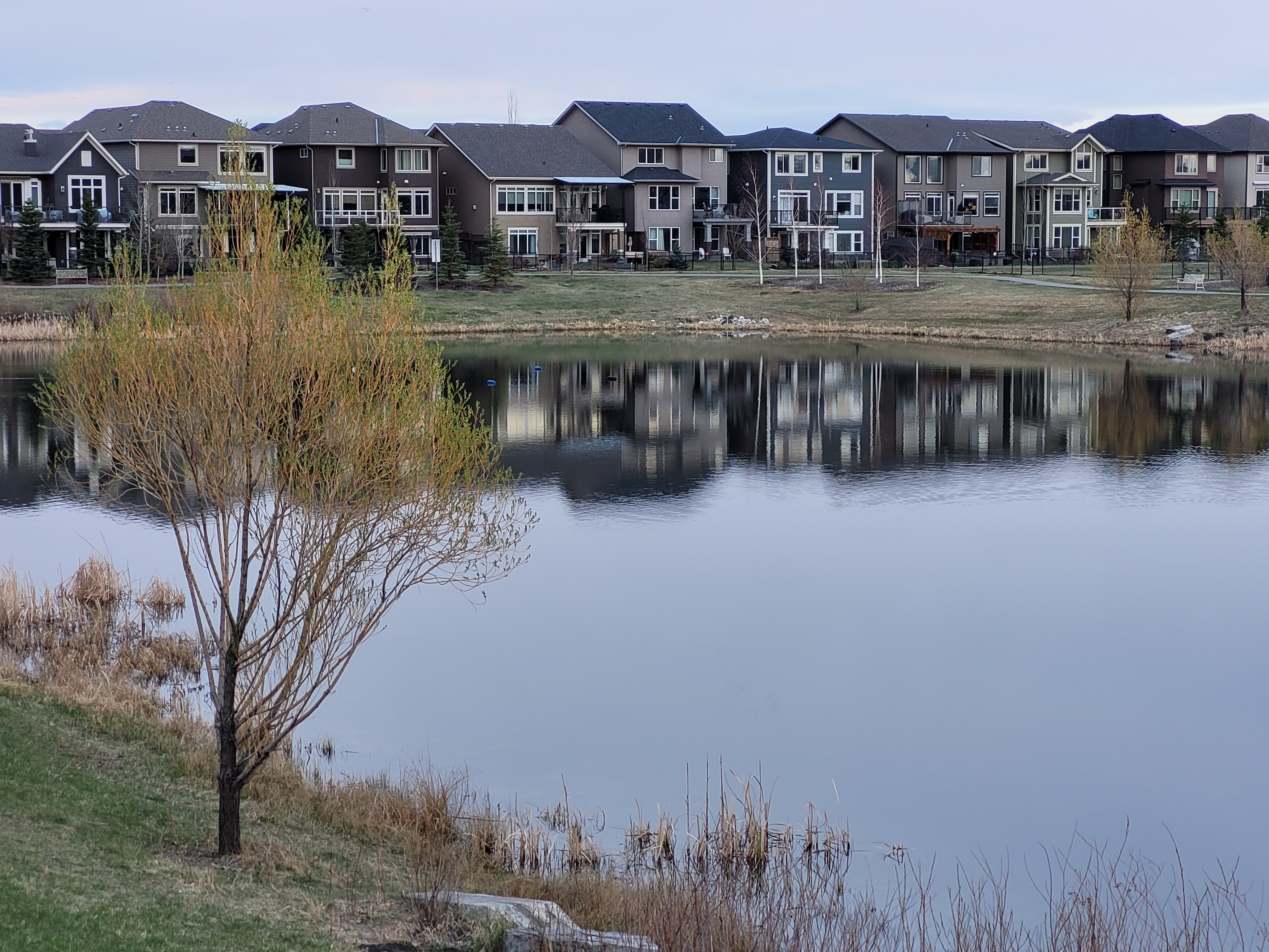 Charlie and Jacques stop in Legacy to have a look at the pond reflections.