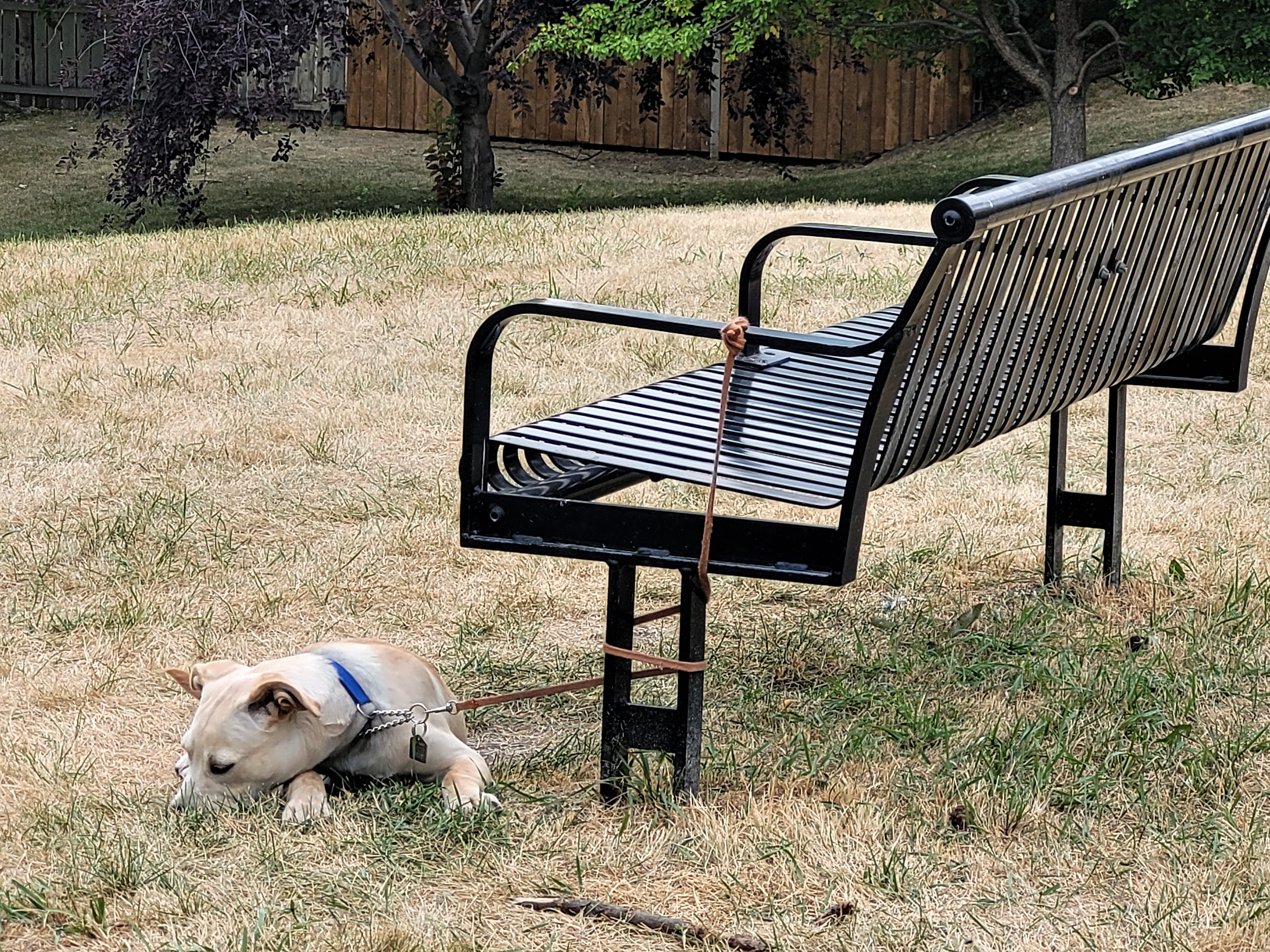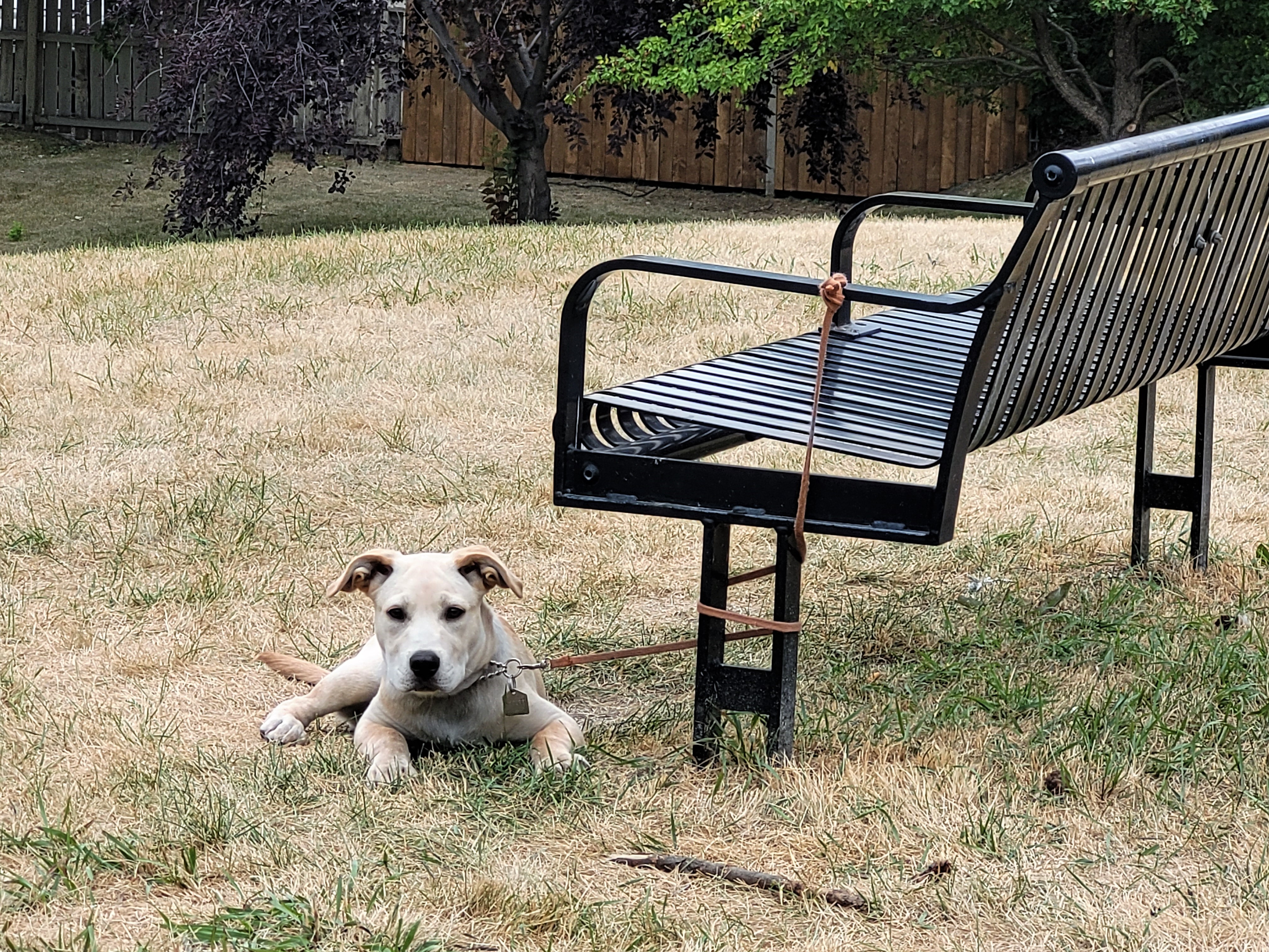 Charlie and Jacques take Princess for a short stroll in Buckmaster Park today.
