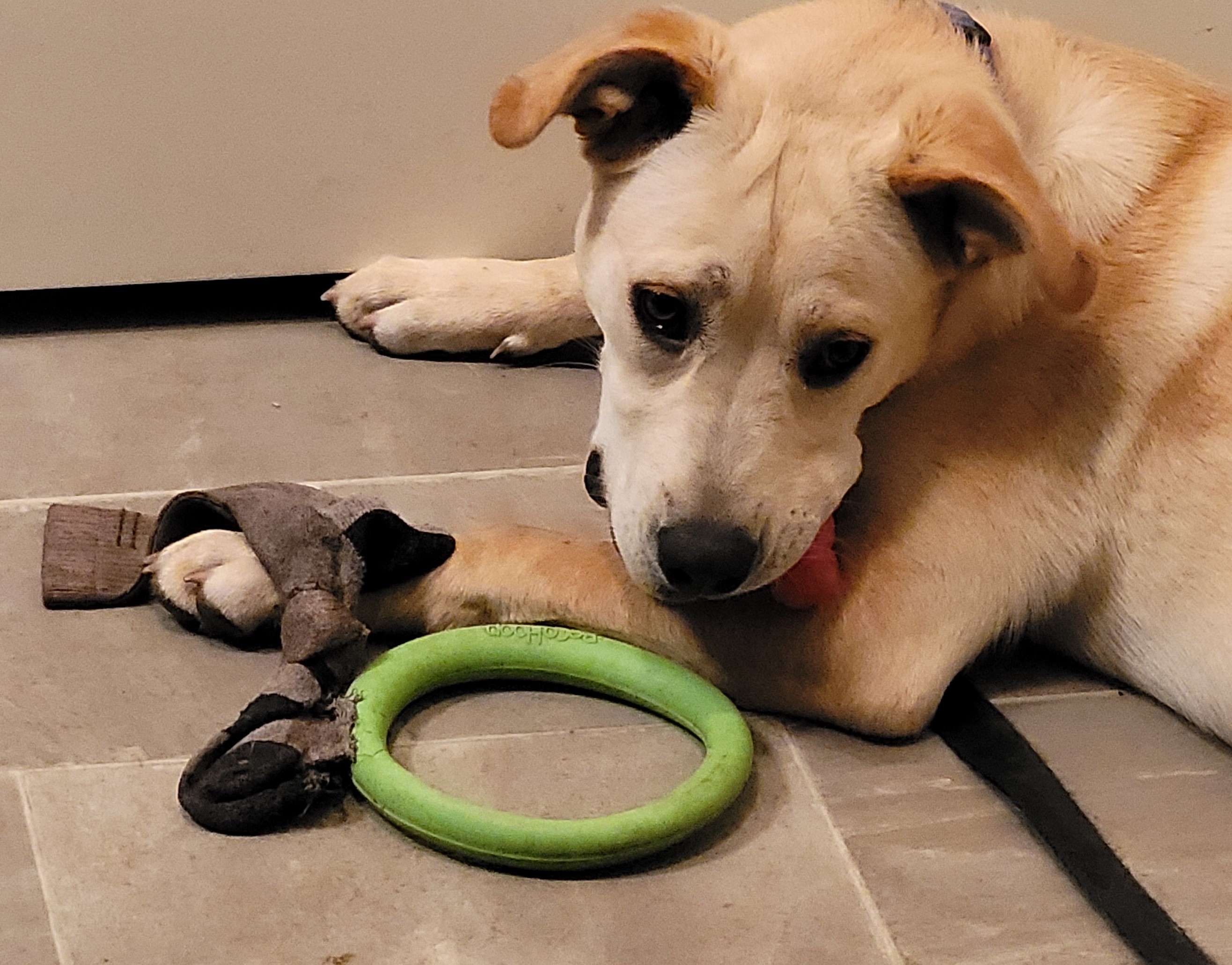 Charlie and Jacques watching Princess at Jacques's apartment as she starts to play with her 3 toys.