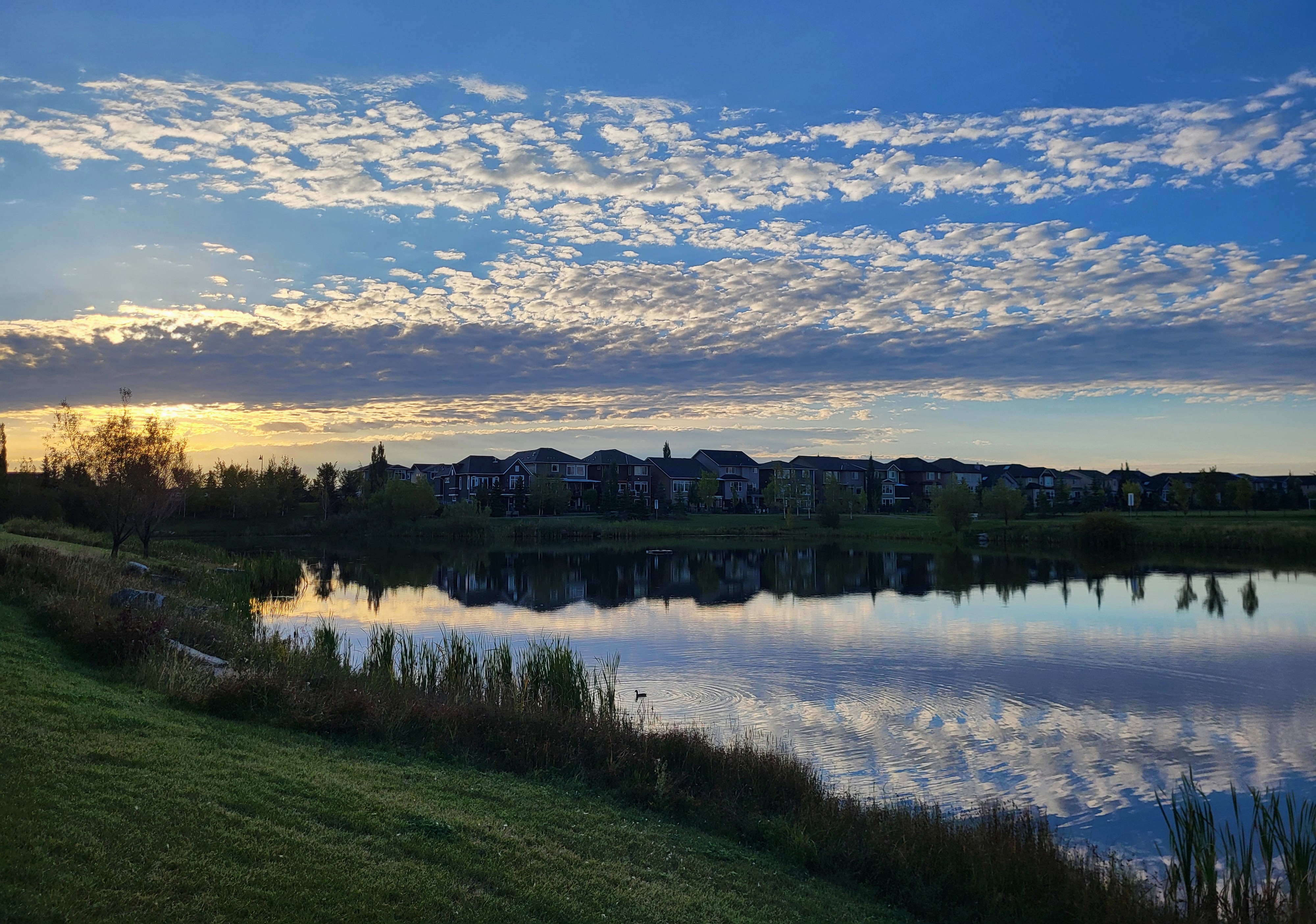 Charlie and Jacques meet up in Legacy to look at the reflections in the pond this morning.